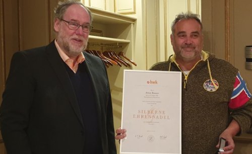 Der Kreishandwerksmeister Michael Stoll verlieh die silberne Ehrennadel an Anton Rauner und Jürgen Weinstein für überaus engagiertes und mind. 15 Jahre ehrenamtliches Engagement. Bernd Grimbacher erhielt die allgemeine Ehrenurkunde für mind. 10 Jahre ehrenamtliches Engagement.